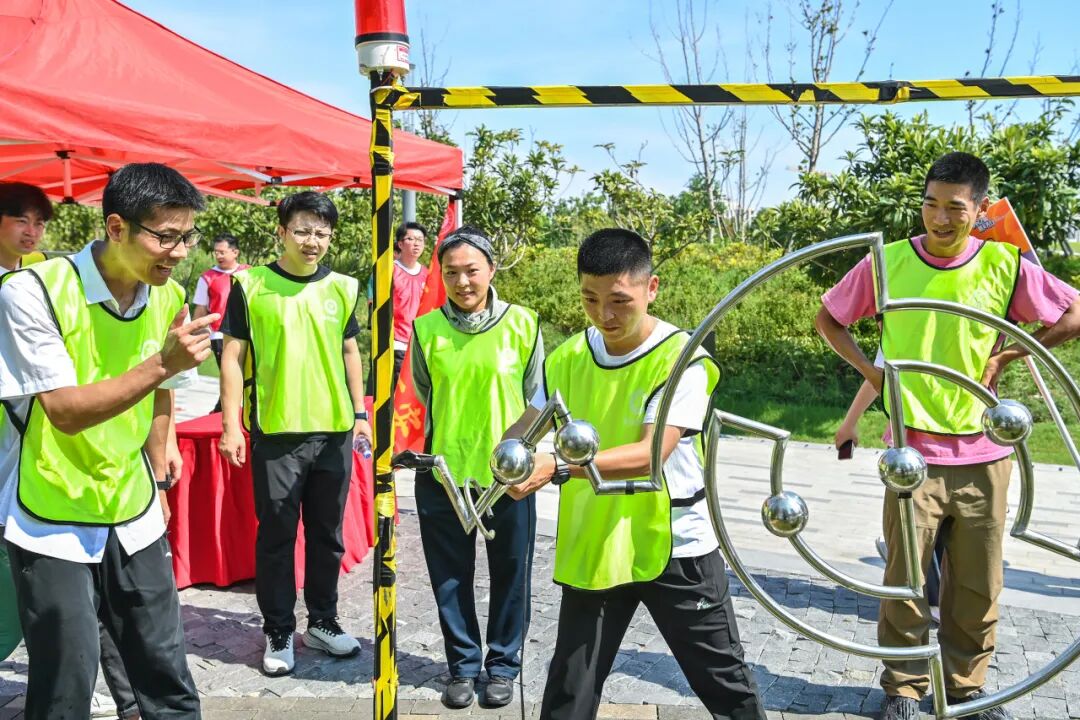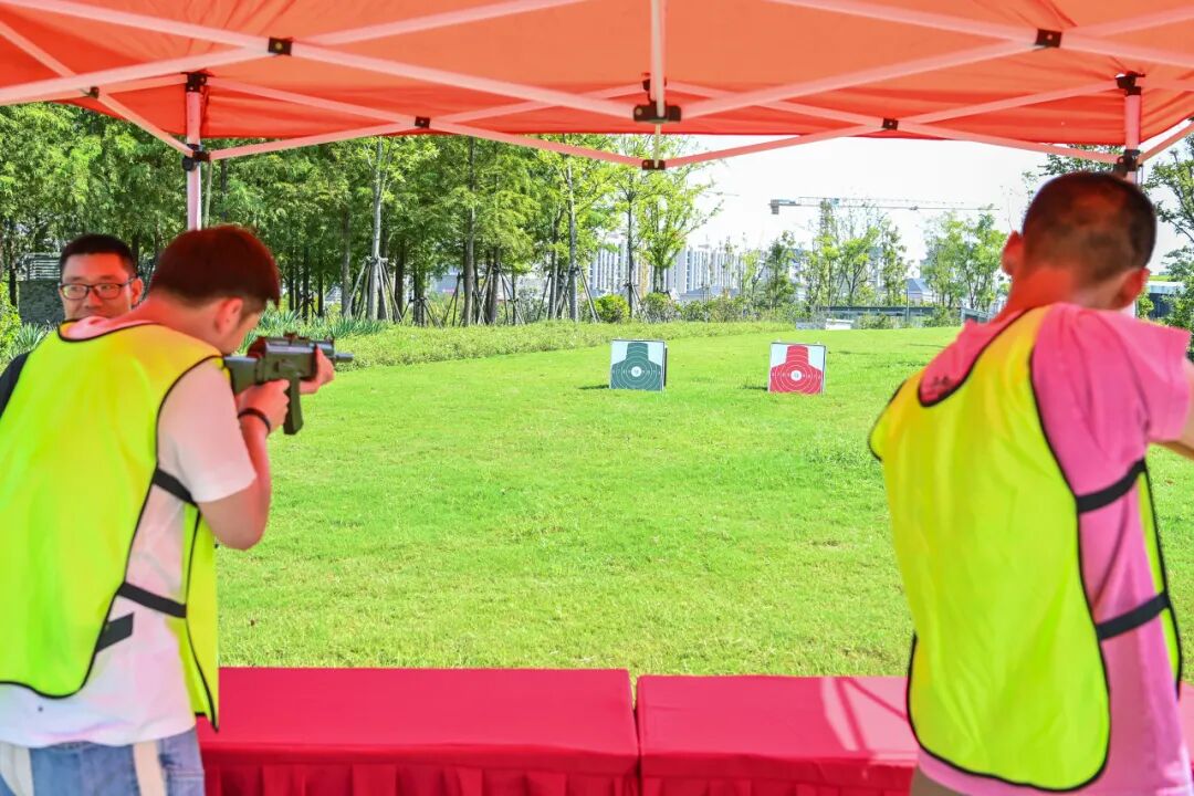 赛事创新还引入了科技元素,“激光射击”项目让队员们在模拟射击中锻炼了心理素质和应急反应能力,沉浸式的体验增强了国防教育的趣味性和实效性。最后的“知识接力”环节,各队需通力合作完成至少10道国防动员及人防知识选择题,将丰富的党史和国防知识转化为主动探索的学习过程,实现了从理论到实践的升华。来自第四党建聚联体代表队的郑昊麟对知识接力环节印象深刻:“答题题库内容非常广泛,从近代国家历史到现行国防教育体系及相关法律法规,教育性很强,也为我们今后在国防教育、国防行动中更好地践行护民使命打下了坚实基础。”