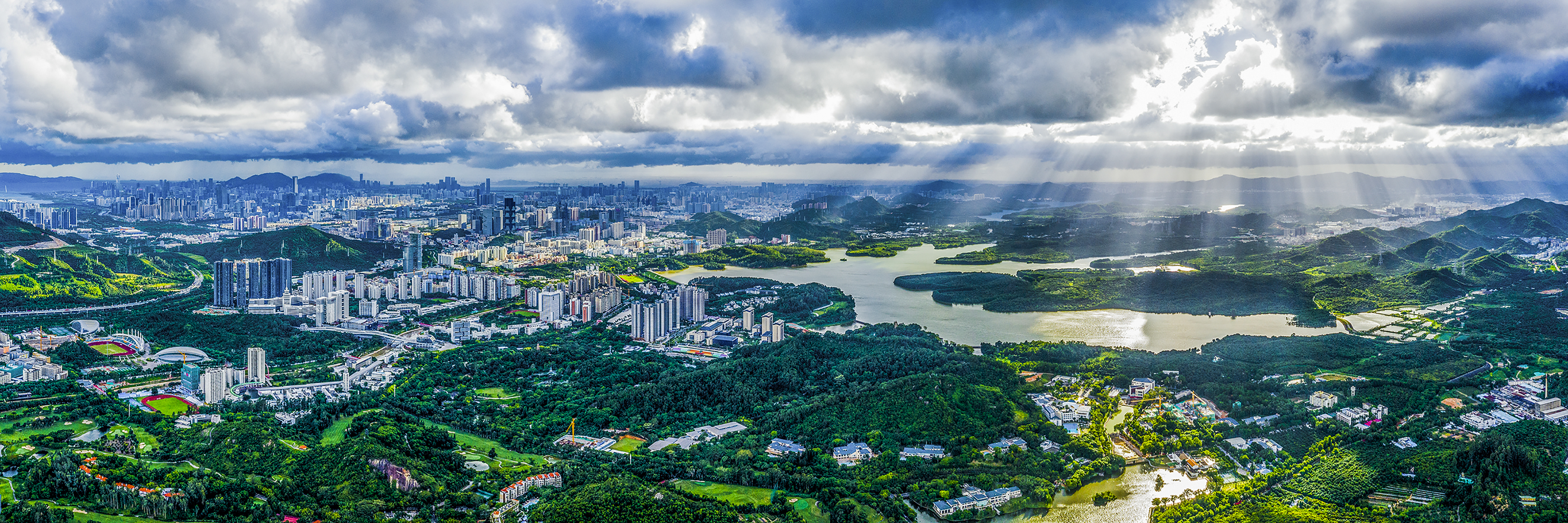 内伶仃洋碧波万顷、深圳湾海天一色、珠江奔流不息、大沙河蜿蜒穿城、西丽水库与长岭皮水库如明珠镶嵌,与南山这座山,山海灵气交融共生,滋养着一方水土,见证着一座城的崛起与奋进。