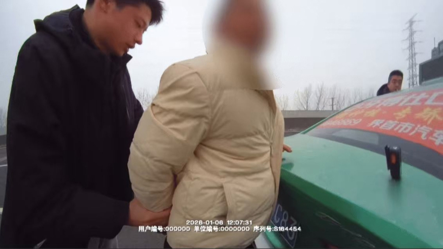“跑分车手”曹某在高速上被拦截。均杨浦警方供图